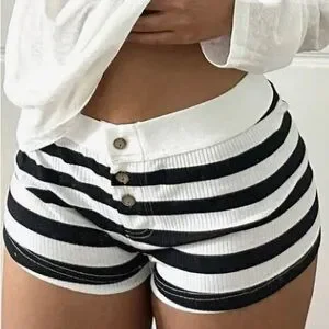 These high waist shorts feature a bold black and white striped pattern, offering a chic and modern look. Crafted from a soft striped material, and drawstring waist they provide a comfortable and snug fit. Perfect for casual outings, these shorts sit high on the thigh for a stylish appearance. Size 3-5