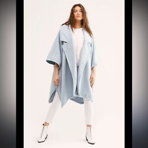 FREE PEOPLE Light Blue Oversized Poncho Coat
