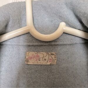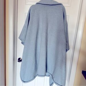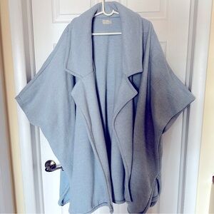 A super Chic oversized poncho/coat in a soft light blue. Perfect for layering. It is one size fits all and very oversized. No closures. Worn maybe a few times. Great condition. I tried to capture the fabric in the last photo - It’s a little inconsistent and there are some speckles of other colors.