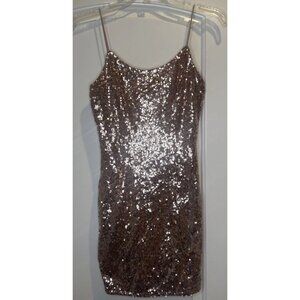 Lulus Women's Rose Gold All Over Sequin Sleeveless Lined Mini Dress Bodycon XS