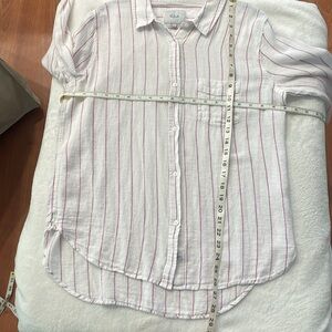Rails Charlie White and Berry Striped Button-Up Shirt in size L in good condition. Stylish white button-up shirt with pink stripes. Features a front pocket and classic collar.