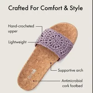 Featuring a hand-crocheted band strap in a fun variety of colors, accents and patterns, these effortless sandals are handcrafted for warm-weather days. Their cork footbed is antimicrobial and sustainable, while also providing support, heel stabilization and shock absorption. Comes packed in a market bag made from natural cotton string, designed to be reused time and again.