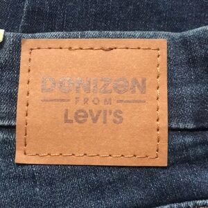 Stylish dark blue denim jeans with a frayed hem. Perfect for casual wear.