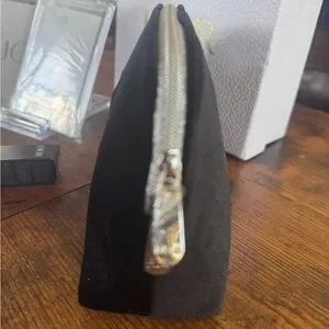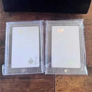 Dior Black Velvet Beauty Bag NWOT (plastic still on pulls), Bronzed Glow Lip Maximizer NIB, and TWO Dior Joy Playing Cards in protective cases. Jack of ♠️ and Queen of ♥️