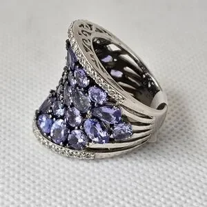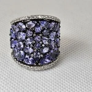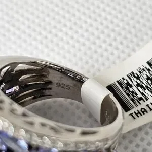 This is a 7.68 carat narural tanzanite ring made of rhodium treated sterling silver. Size 8. NWT