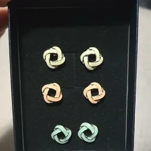 Elegant Knot Stud Earrings Set - Cream, Peach, Mint