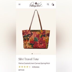 Never used! Gorgeous Patricia Nash Bag! ❤️❤️100% cotton-linen blend with TPU coating, 100% leather trim