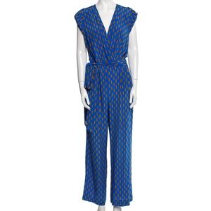 Diane Von Furstenberg 100% silk Blue and Orange Geometric Patterned Jumpsuit
