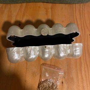Unique pearl bubble clutch with a gold clasp. Perfect for a night out! Used once for daughters’ prom night.