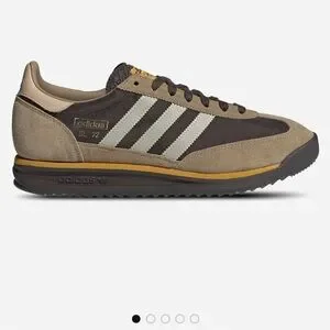 Step out in style with these Adidas men's sneakers. Featuring a sleek brown and tan design, these shoes offer both comfort and fashion. Perfect for any casual outing.