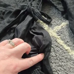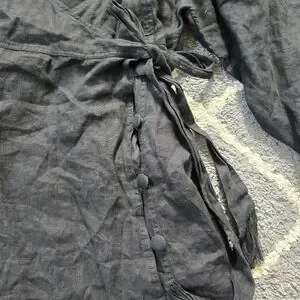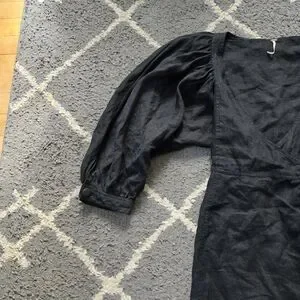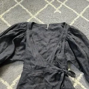 FREE PEOPLE Black Linen Carino Mini Wrap Dress Small Petite