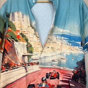 Experience style and comfort with this vibrant blue and red racing graphic shirt. Perfect for casual outings, this shirt adds a unique touch to your wardrobe. BEAND NEW without a tag