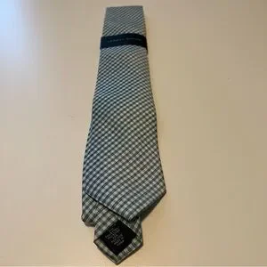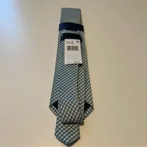 4. Tommy Hilfiger Men's Aqua Seasonal Gingham Tie - 41%!Linen, 31% Polyester and 28% Silk