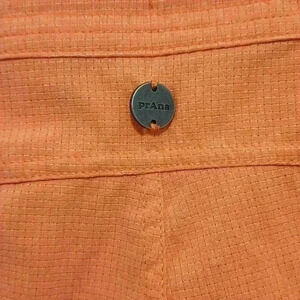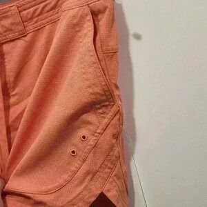 prAna Womens Ebelie Boardshorts Orange Size Small. The only visible flaw is that there is a small black mark near one of the pockets on the right side. Otherwise, in overall good condition. Features hook & loop closure with drawstring.