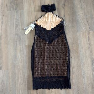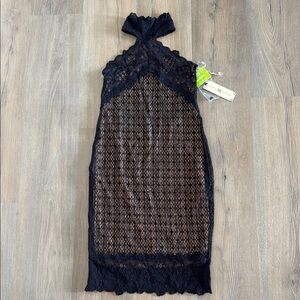 NWT Nightcap by Free People Formal Black Mesh Lace Halter Top Dress, Size 3 (M)