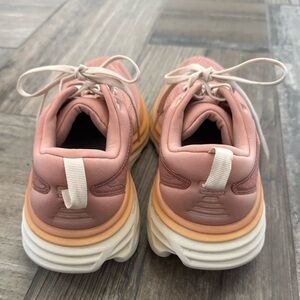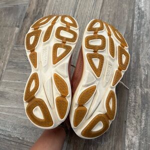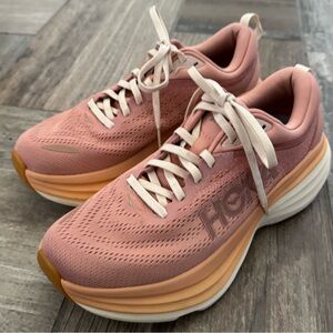 Hoka Bondi 8 Women’s size 8. Like new condition. In Sandstone Cream. One of the hardest working shoes in the HOKA lineup, the Bondi takes a bold step forward this season reworked with softer, lighter foams and a brand-new extended heel geometry. Taking on a billowed effect, the rear crash pad affords an incredibly soft and balanced ride from heel strike to forefoot transaction.
