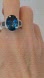 Gorgeous large 16 x 12 mm oval cut, approximately 10 carats of genuine London   blue topaz with teal diamond accents on each side. It's crafted in sterling silver with rhodium overlay. The rhodium will prevent tarnishing and preserve the shine. Size 9.