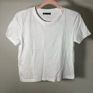 Experience the perfect blend of comfort and style with this Zara short sleeve tee. Crafted from high-quality materials, it offers a soft touch and a relaxed fit, making it ideal for everyday wear. The minimalist design ensures versatility, allowing you to pair it effortlessly with any outfit. Classic and basic closet staple. Cropped bottom
