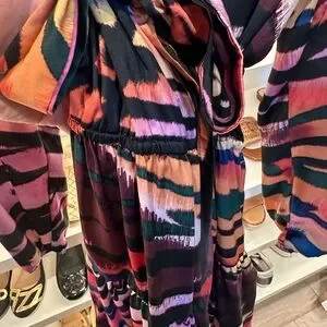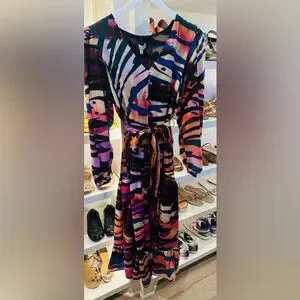NWT Willa Storey abstract dress with elastic waist and tie belt.
