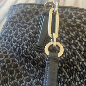 Stylish tote bag with a black and gray pattern. Perfect for everyday use. Preowned w/ minimal ware on bottom corner and in bottom of bag