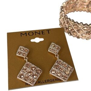 Monet Rose Gold Stretchy Crystal Bracelet with Earrings