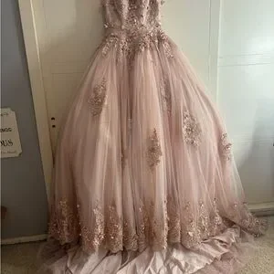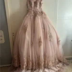 Stunning pink gown with intricate embellishments. Perfect for special occasions.