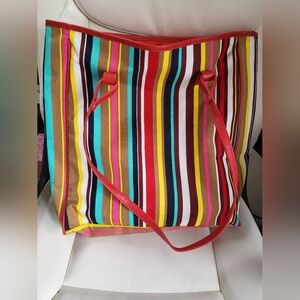Brighten your day with this vibrant striped tote bag. Perfect for any occasion, this bag features a lively mix of colors that add a pop to any outfit.