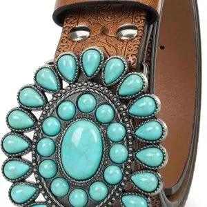 Western Belts for women Detachable Design: Allowing you to change the buckle or change the strap freely. featured with a turquoise buckle and floral engraved belt strap, capturing the essence of western fashion, is a must-have accessory for women who love vintage Western charm. Turquoise belts for women is perfect with a cowgirl hat, boots or other western accessories for a western themed look.