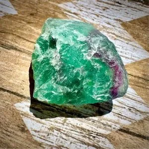 Raw transparent green fluorite crystals with purple banding, listing is for one piece