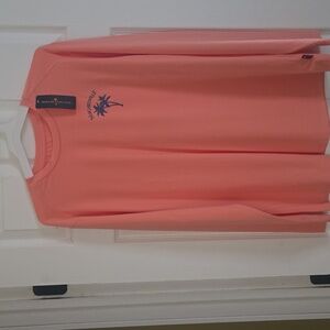 This Margaritaville Long Sleeve top features a graphic design on the back. peach color