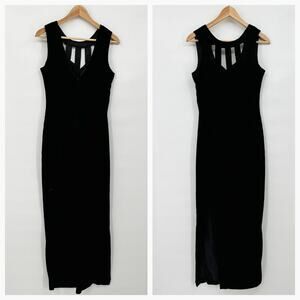 Vintage Jessica McClintock Gunne Sax Crushed Velvet Long Black Gown S/M