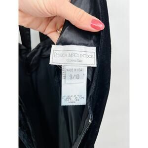 Vintage Jessica McClintock Gunne Sax Crushed Velvet Long Black Gown S/M. Preowned, no holes or excessive wear. Light discoloration under armpit area as pictured.