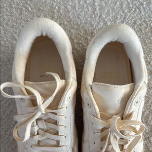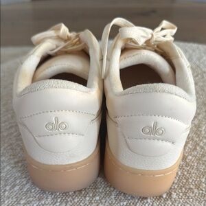 Stylish Alo sneakers in a cream color. Perfect for casual wear. Most comfortable sneakers. Worn 1x. Not a fan of the color so I got the all white.