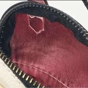 Brand new. The most adorable little mini handbag bag charm/ key pouch. Just big enough to hold your essential credit cards, keys, lipstick, etc. Top zip closure, vegan leather exterior with gold hardware, burgundy interior. Dress up your bag or keys! So so cute.