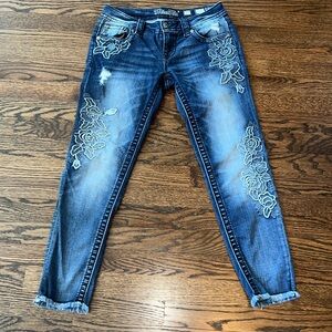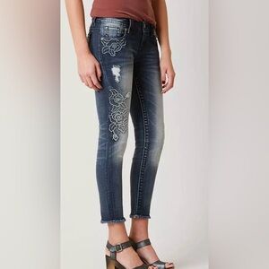 Miss Me Floral Embroidered Signature Skinny Ankle Jeans Style E7767AK2A