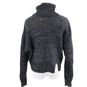 Black with rainbow confetti specks throughout this chunky knit turtleneck. Notch cut out detail at hem for added interest. Drop shoulders. Relaxed fit. 100% acrylic. Size Large. NWOT.