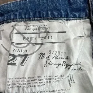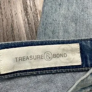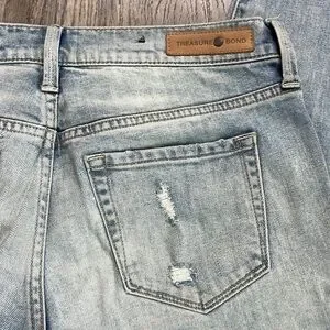 Treasure & Bond Women’s Distressed Mid Rise Skinny Boyfriend Ankle, size 27. In great used condition. See pictures for measurements and fabric content.