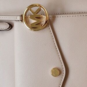 Gold Hardware MMK Jet Set Saffiano Frame Leather Bag Medium Tote Front Pocket