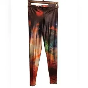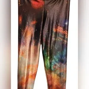 Vibrant galaxy print leggings with a cosmic design. Perfect for adding a pop of color to your outfit.