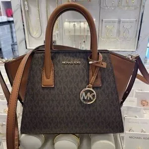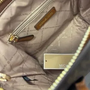 Michael Kors Avril Small Leather Logo Satchel Crossbody Brown Top Zip Bag