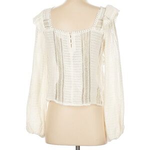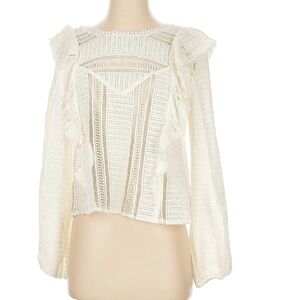 Sezane Lace Love Blouse 100% Cotton Ivory White Ruffled Open Knit French Girl