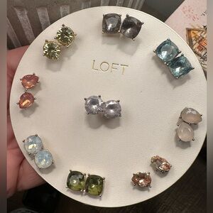 New! 9 pairs of Loft stud earrings for pierced ears. Multiple colors and shapes. Dime is in photo for size reference. Smoke/pet free home.