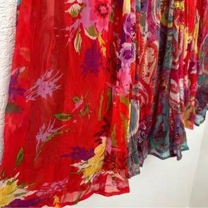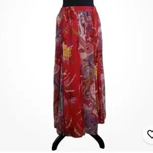 Travel Smith Red Floral Crinkle Chiffon Maxi Skirt Size Large