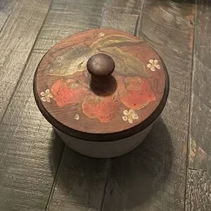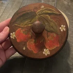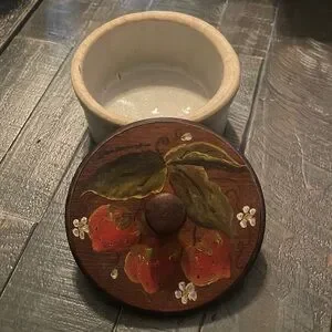 🍓Vintage Handcrafted Strawberry Wooden Lid Pottery Canister