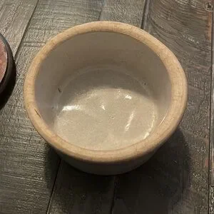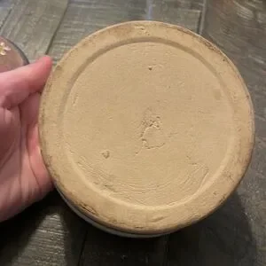 This adorable pottery piece measures 6” in diameter, comes with a wooden lid hand painted with strawberries, and is only partially glazed to add texture. Perfect for a trinket dish, kitchen canister, or decoration.