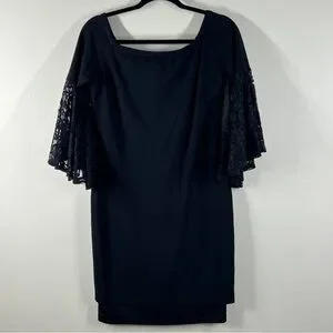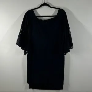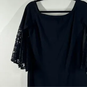 BAR III Women’s Size L Black Midi Dress Lace Bell Sleeves