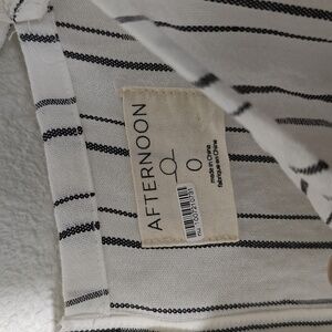 NWT super cute. Ruffled shoulders. Buttons are on the back. Side zip. Dress is off white with dark navy stripes. Some may think black??? Nothing wrong with this dress!! Light and airy for those warm summer nights