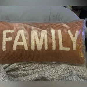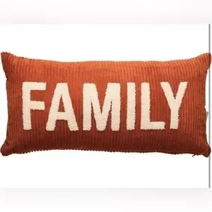 CORDUROY PILLOW: Pillow features corduroy and embroidered sentiment