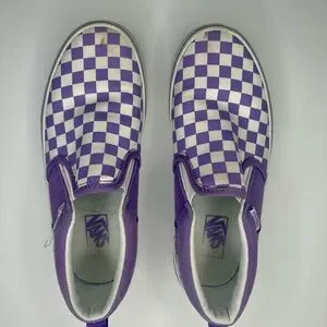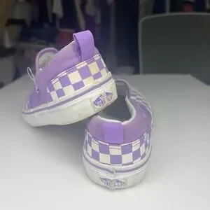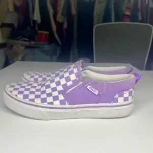 Stylish and comfortable, these Vans slip-on shoes feature a vibrant purple checkered design. Perfect for active kids who love to stand out.