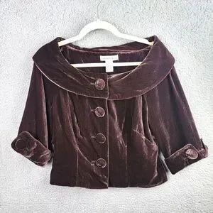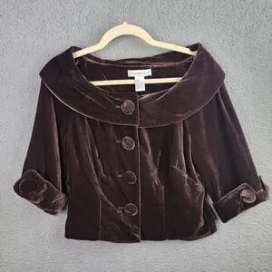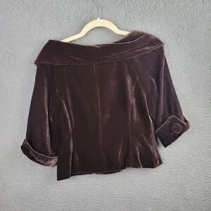 Mandarin Blue Jacket Womens 6 Chocolate Brown Velvet Crop Jackie Kennedy Retro